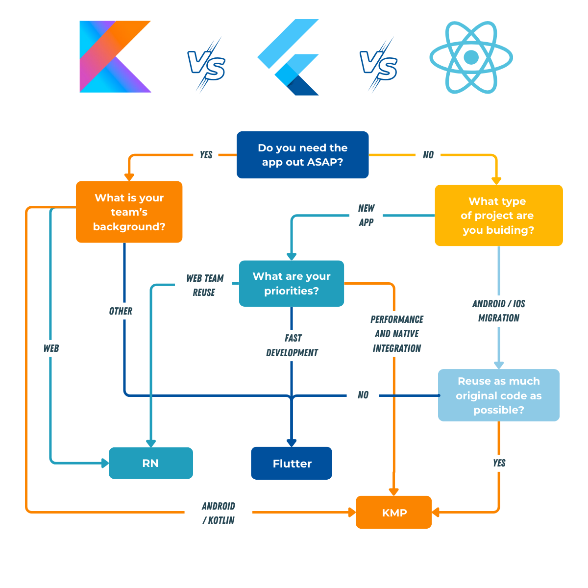 Each has strengths, but the “right” choice depends on your existing codebase, team experience, goals, and release timelines. So I put together this decision tree to help you make the right decision.